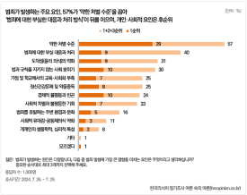 최근 조사에서 사람들에게 범죄가 왜 발생하냐고 물었더니 57%가 처벌 수준이 약해서라고 답했고